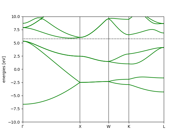 The above script uses Fermi level as reference energy zero, and generates band structure plot as Figure 2.